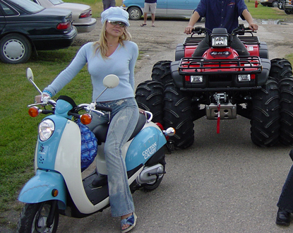 My Beautiful Wife on a Cotton Candy Scooter being pulled over by an 8x8..